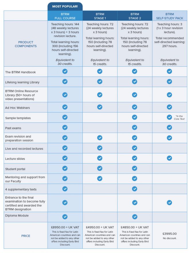 The BTRM Full Course and Self-Study Pack offer different learning experiences tailored to individual needs.